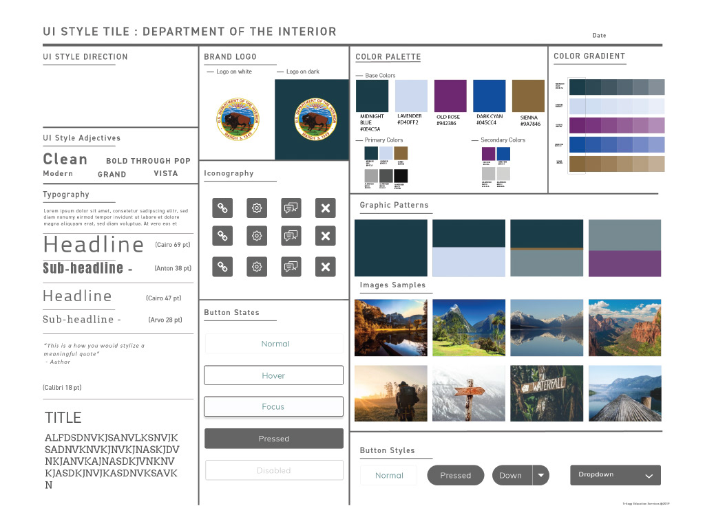 Using photos from national parks, I derived some color pallet options. The national parks are an important part of the DOI websites.